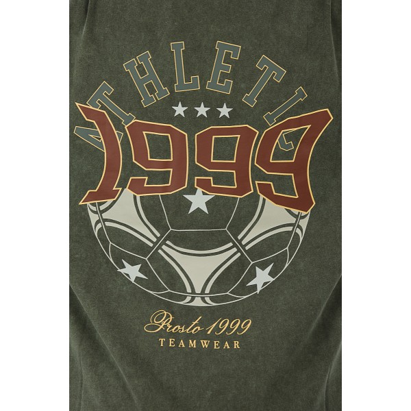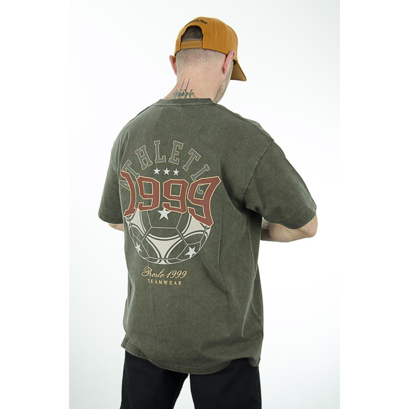 T-shirt Athletic Washed Brown – męska koszulka oversize z linii Prosto, w której sportowe inspiracje spotykają się z klimatem vintage. Efekt sprania nadaje jej unikalny charakter, a duży, haftowany i drukowany motyw „Athletic 1999” na plecach przyciąga uwagę i podbija streetwearowy vibe. Na froncie subtelny napis dodaje całości balansu. Miękka bawełna o średniej gramaturze zapewnia komfort noszenia, a luźny krój – swobodę ruchów.